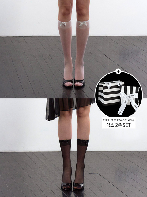 [비나제이] [기프트 패키지 포함] 티니리본 시스루 삭스 (2 Colors)