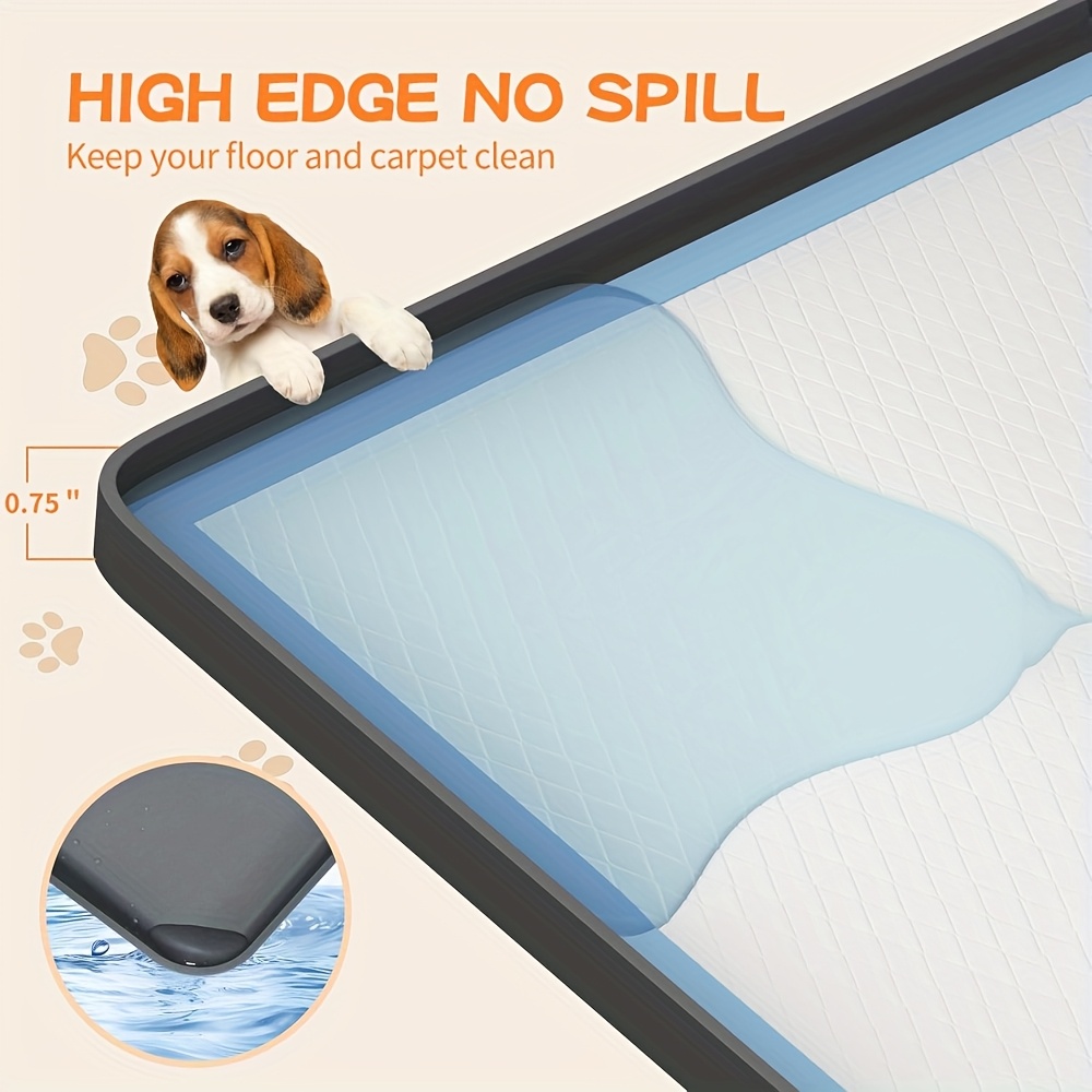 TEMU 강아지 배변 패드 보관 트레이, 미끄럼 방지 디자인, 최대 24" X 24"까지의 훈련 패드 수용, 쉬운 패드 교체를 위한 높은 가장자리, 클램프 8개 및 강아지 화장기 패드 4개 포함