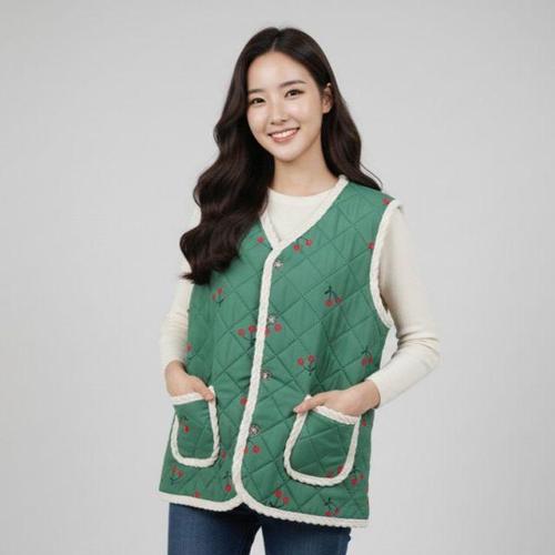 꽃조끼 누비조끼 복고조끼 할머니조끼 누빔 패딩 WFLMYEG