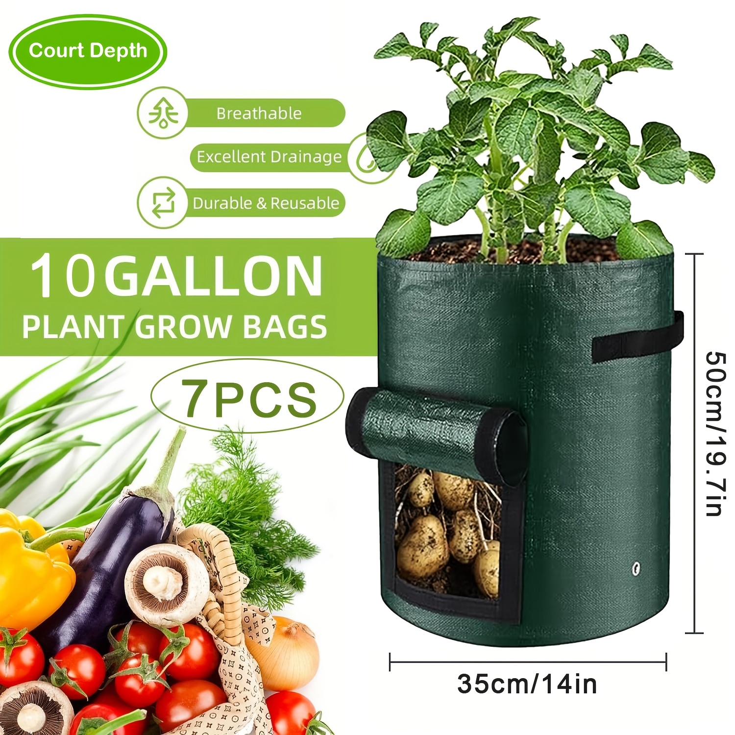 TEMU 감자 재배용 가방 7개 세트 (플랩 & 손잡이 포함), 1/3/5/7/10갤런 내구성 & 경량 PE 화분, 토마토 당근 양파 채소용, 휴대용 통기성 화분 가방, 실내외 정원, 발코니 & 테라스용