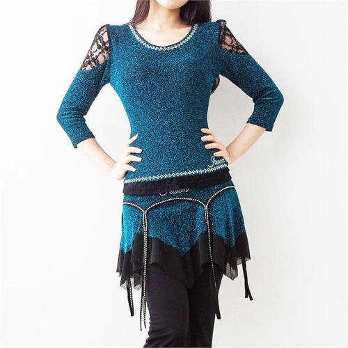 까르죠아 우아한 배색 보석 블라우스 사교 스포츠 의상 상의 라인 여성 라틴 댄스복