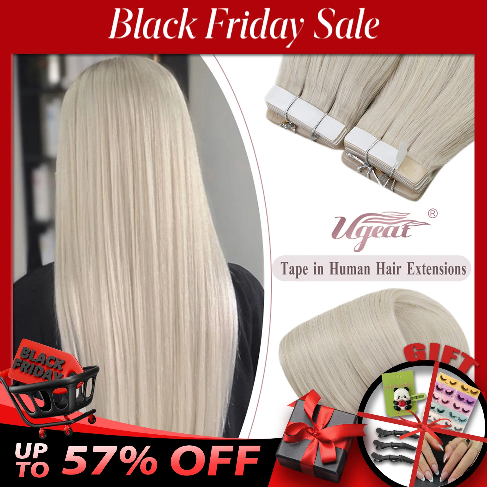 Ugeat 테이프 헤어 익스텐션 인간의 머리카락 진짜 자연 브라질 레미 헤어 스트레이트 원활한 피부 씨실 여성용 Balayage 20P/40P
