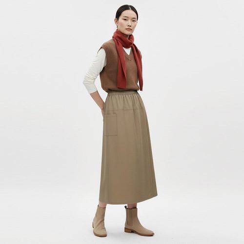 [샵앤][샵앤] 여성 밴딩 옆포켓 도톰원단 사선절개 랩스커트 팬츠 RBE-WPT-20871-카키