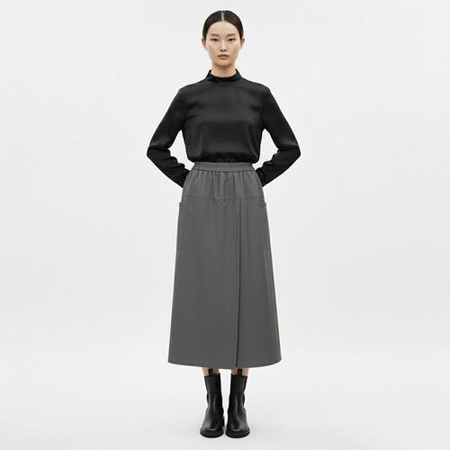 [샵앤][샵앤] 여성 밴딩 옆포켓 도톰원단 사선절개 랩스커트 팬츠 RBE-WPT-20871-차콜