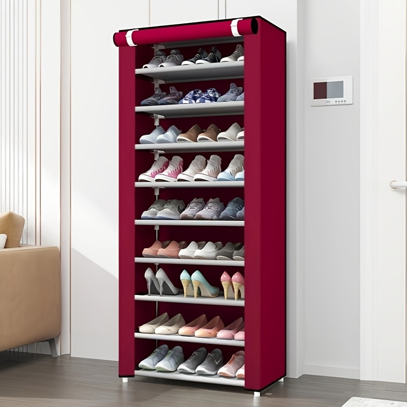 TEMU 10단/9칸 간단한 신발장, 다층 조합 방진 신발장, 패브릭 신발장, 강철 프레임 신발장, 신발 정리대, 현관용 폐쇄형 신발장, 신발 보관장, 신발장