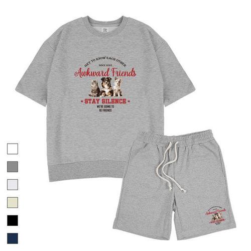 [폴앤폴]스테이사일런스 오버핏 반팔 맨투맨 반바지 세트 남여공용