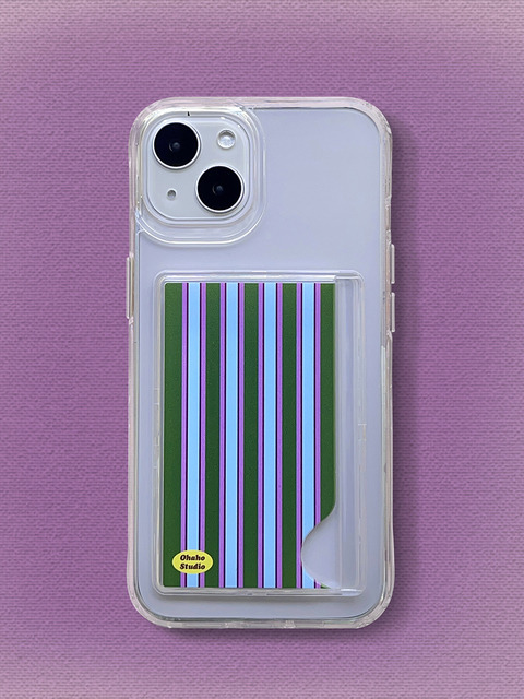 [오하호 스튜디오] 그린 스트라이프 카드 포켓 폰 케이스