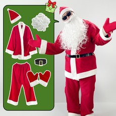 성인 고급 산타복 산타옷 산타복장 남자 빅사이즈 6종 세트 (상의+하의+벨트+모자+수염+장갑)