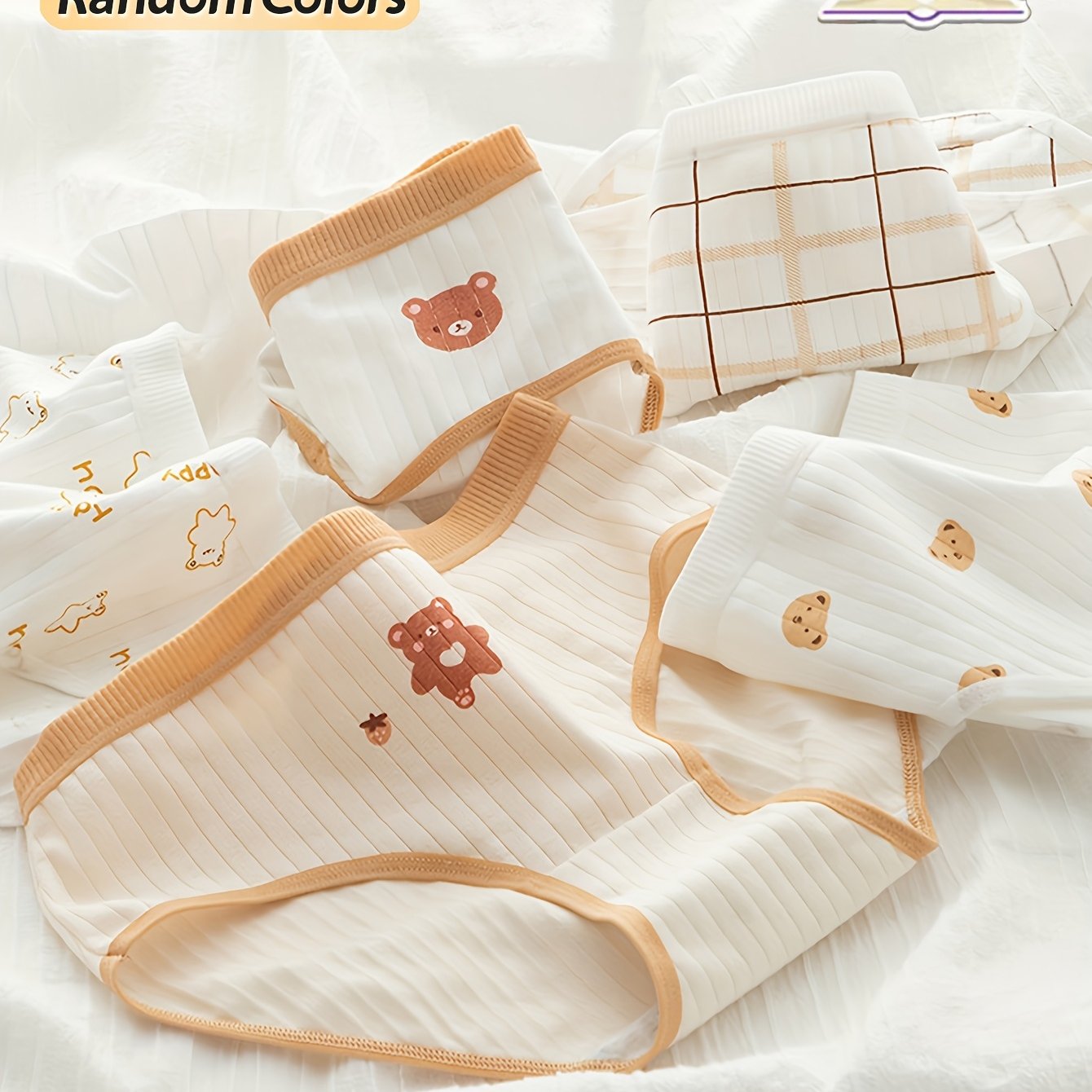 TEMU 10대 여아 속옷 5매 세트, 편안하고 통기성 좋은 데일리 속옷, 부드러운 레이스, 로맨틱 랜덤 만화 곰돌이 프린트 멀티 컬러 패키지 반바지, 딸과 손녀를 위한 선물 브리프