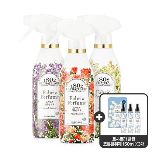르샤트라 섬유탈취제 400ML 3종 + 클린코튼 150ml 3개