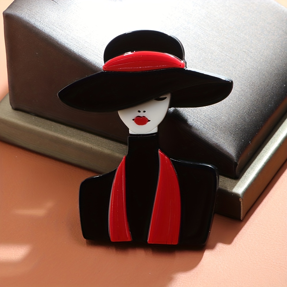 TEMU 2D 평면, 수제 다층 아크릴 패션 걸 레드 스카프 브로치 1개, 휴일 선물