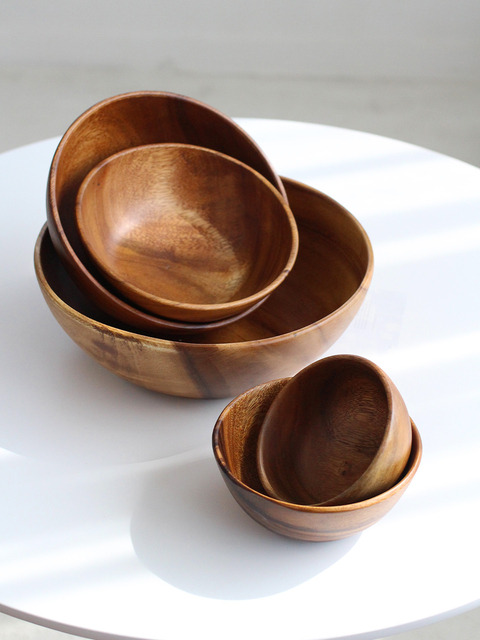 [아카시아] 아카시아통원목 나무 우드그릇 우드볼 샐러드 볼4사이즈