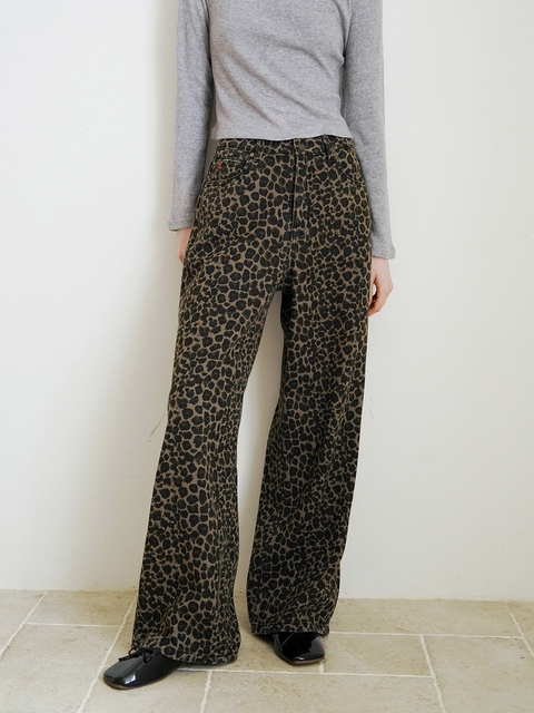 [히어리] 샐리 클래식 와이드 데님 팬츠_레오파드