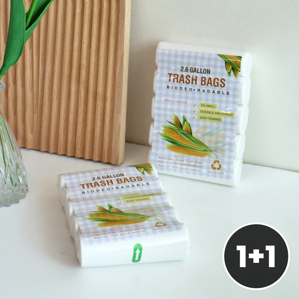 1+1(총 200매) 옥수수 전분 생분해 쓰레기봉투 썩는 비닐봉지 자연분해 주방 휴지통