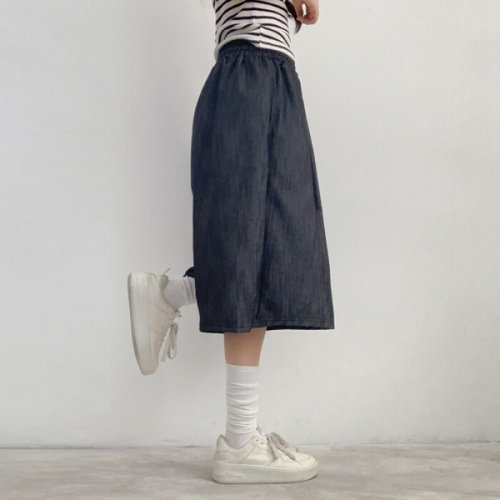 [옷자락]여성 와이드 데님 팬츠 키치 무드 코튼 생지 진청 논페이드