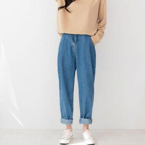 [다잇템]여자 민무늬 통큰 생지 진팬츠 와이드핏 청바지 (11690206A)