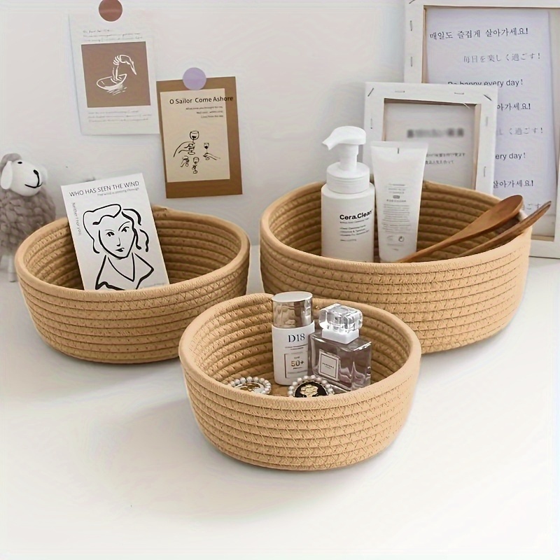 TEMU 3개 세트 보호 스타일 직조 천 보관 바구니, 과일 스낵 화장품용 라운드 롤링 정리함, 홈 룸 장식, 데스크탑, 바구니, 선반 바구니