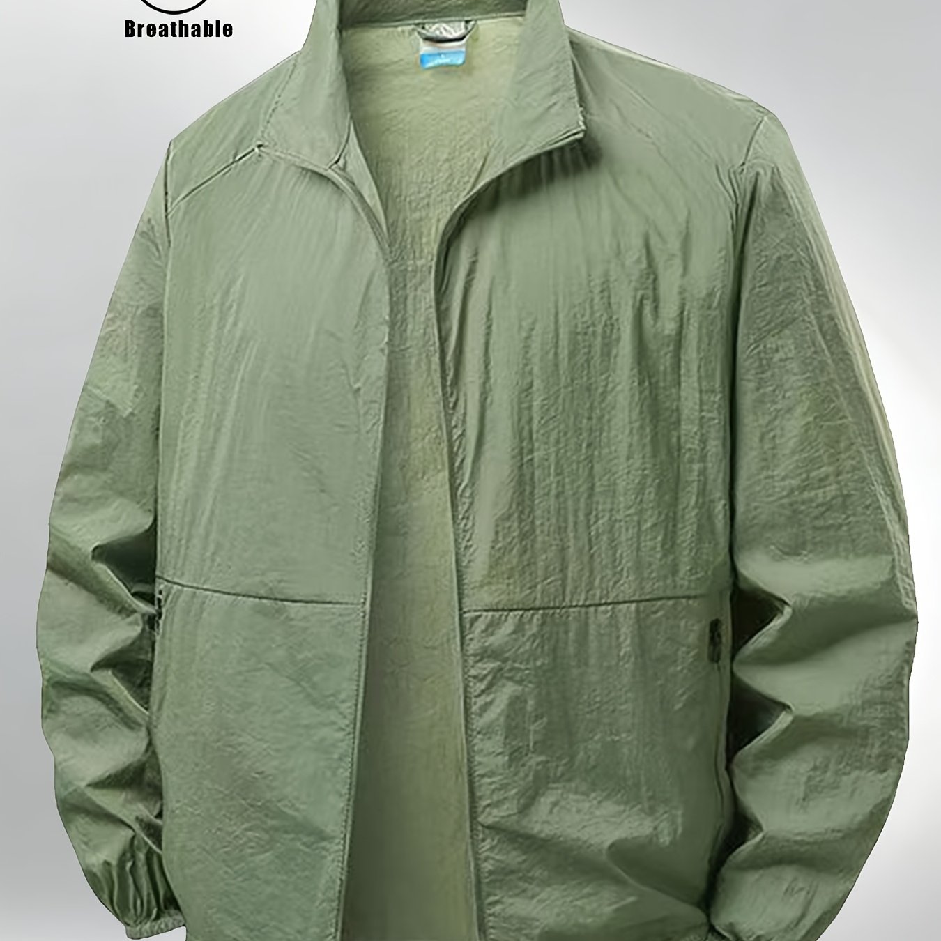 TEMU 남성용 경량 재킷 - 통기성 좋은 원단, 지퍼형 스탠드 칼라, 단색, 야외 활동에 적합