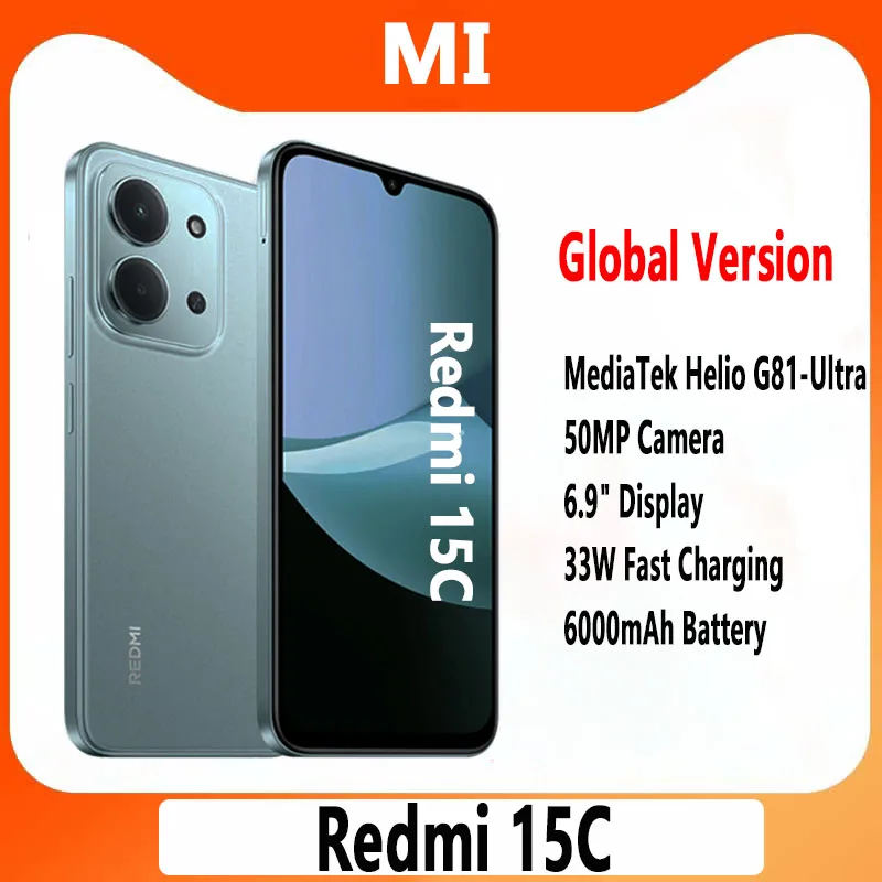 샤오미 레드미 15C 글로벌 버전 스마트폰 50MP 메인 카메라 120Hz 6.9인치 도트 드롭 디스플레이 33W 충전 미디어텍 헬리오 G81-울트라
