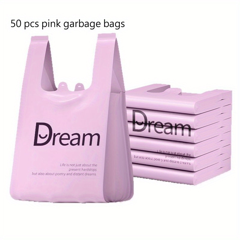 TEMU 50개 스타일리시 핑크 쓰레기봉투 "드림" 디자인 - 휴대용, 20L 용량, 가정, 사무실, 기숙사 및 차량 사용에 적합, 폴리에틸렌 소재, 거실, 침실, 욕실, 주방에 완벽, 쓰레기봉투