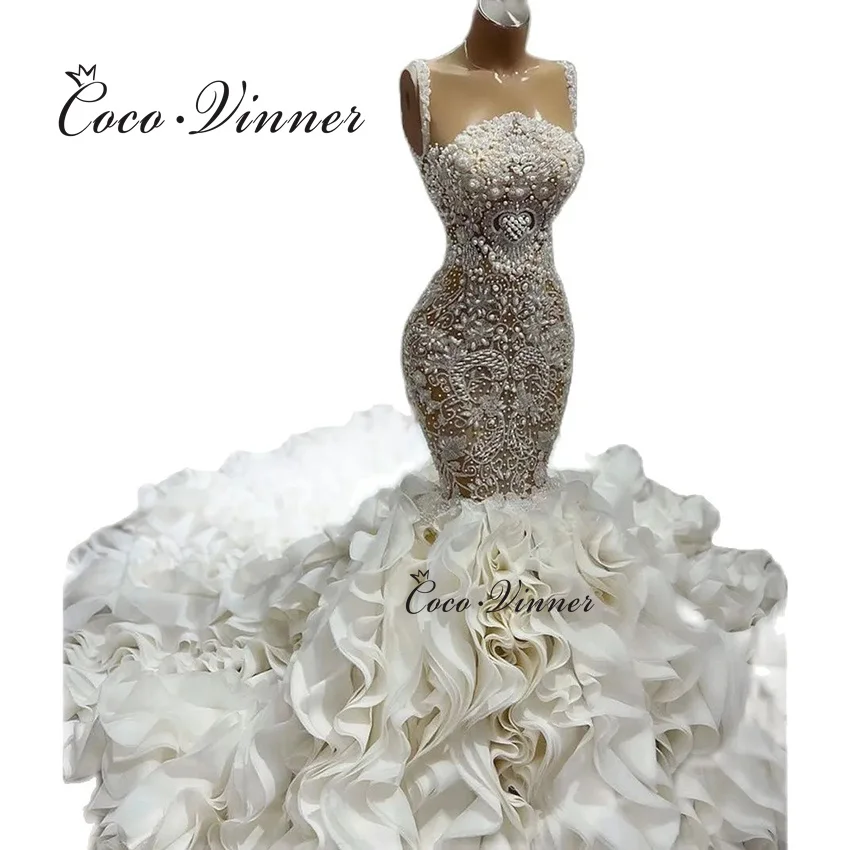 Flavinke 맞춤형 웨딩 드레스 스팽글 진주 신부 볼 가운 Strapless 민소매 공주 신부 드레스 Vestidos De Novia
