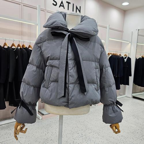 [SATIN] 리본 타이 덕다운 패딩 점퍼 O254T862