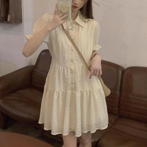 TEMU 부드럽고 독특한 그린 플로럴 A라인 비치 드레스, 짧은 퍼프 소매와 아름다운 허리 슬림핏 디자인