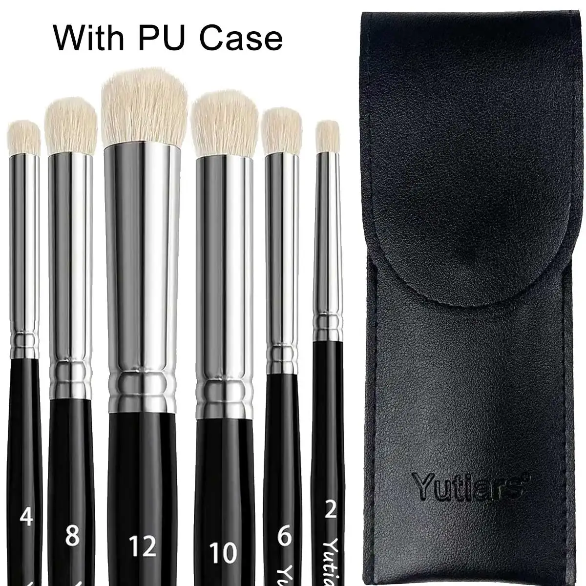 6개입 둥근 머리 드라이 브러쉬 세트 - 수채화, 아크릴, 모델 페인팅용 고품질 양모 브러쉬 - 휴대용 보관 가방
