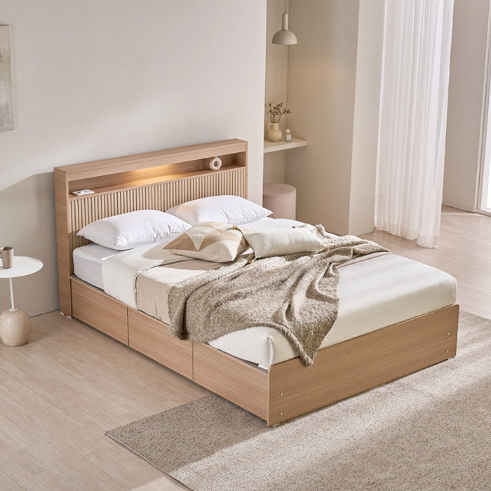 [케어퍼니처]단테 LED 수납형 서랍형 침대 슈퍼싱글 퀸 침대 프레임