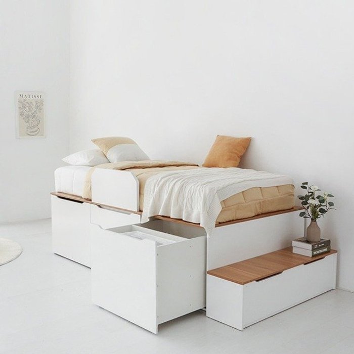 데오 원목 서랍형 침대프레임 슈퍼싱글 학생(내츄럴)