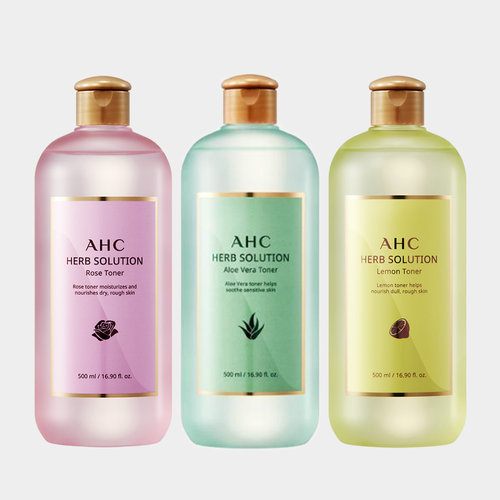 [AHC] 허브솔루션 대용량 토너 500ml 1개(알로에베라/로즈/레몬 중 택1)