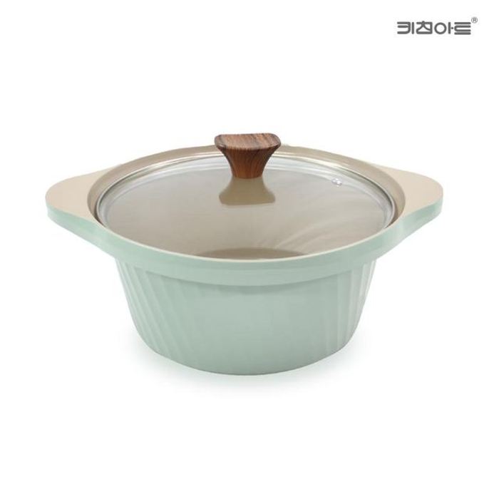 키친아트 세라믹냄비S 18편수(녹색) 통주물냄비