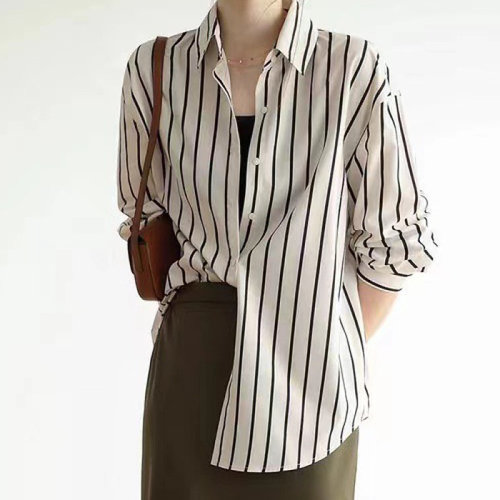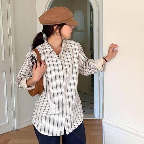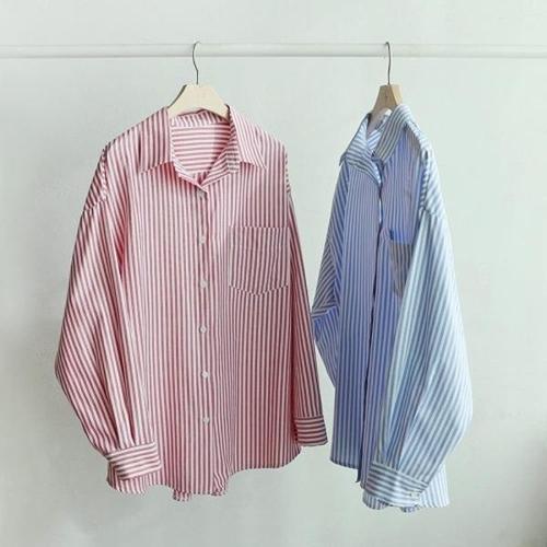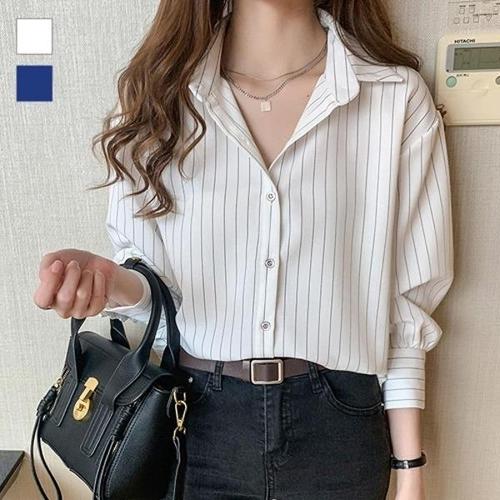 여자 오피스룩 세로 스트라이프 남방 셔츠 봄 가을 긴팔 2색 (WFK28M4)