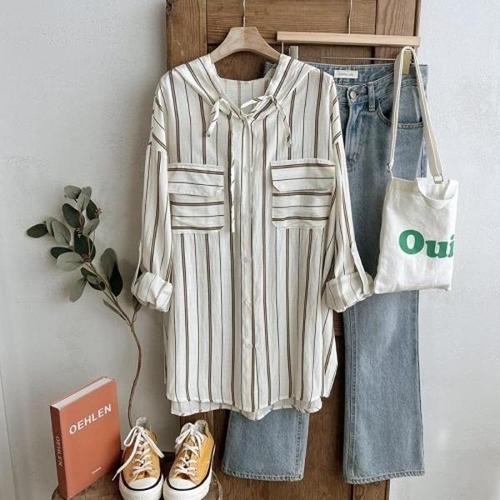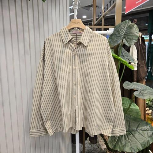 고품질 여자 오피스룩 세로 스트라이프 남방 셔츠 봄 가을 긴팔 2색 (WFK28M4)