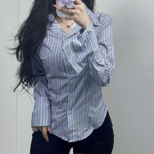 [브이와이][VY] 여자 버튼 후디 단가라 그런지 SS 세로줄 셔츠_16083123_588847