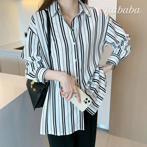 나바바 / NB651 세로 스트라이프 캐주얼 긴팔 셔츠