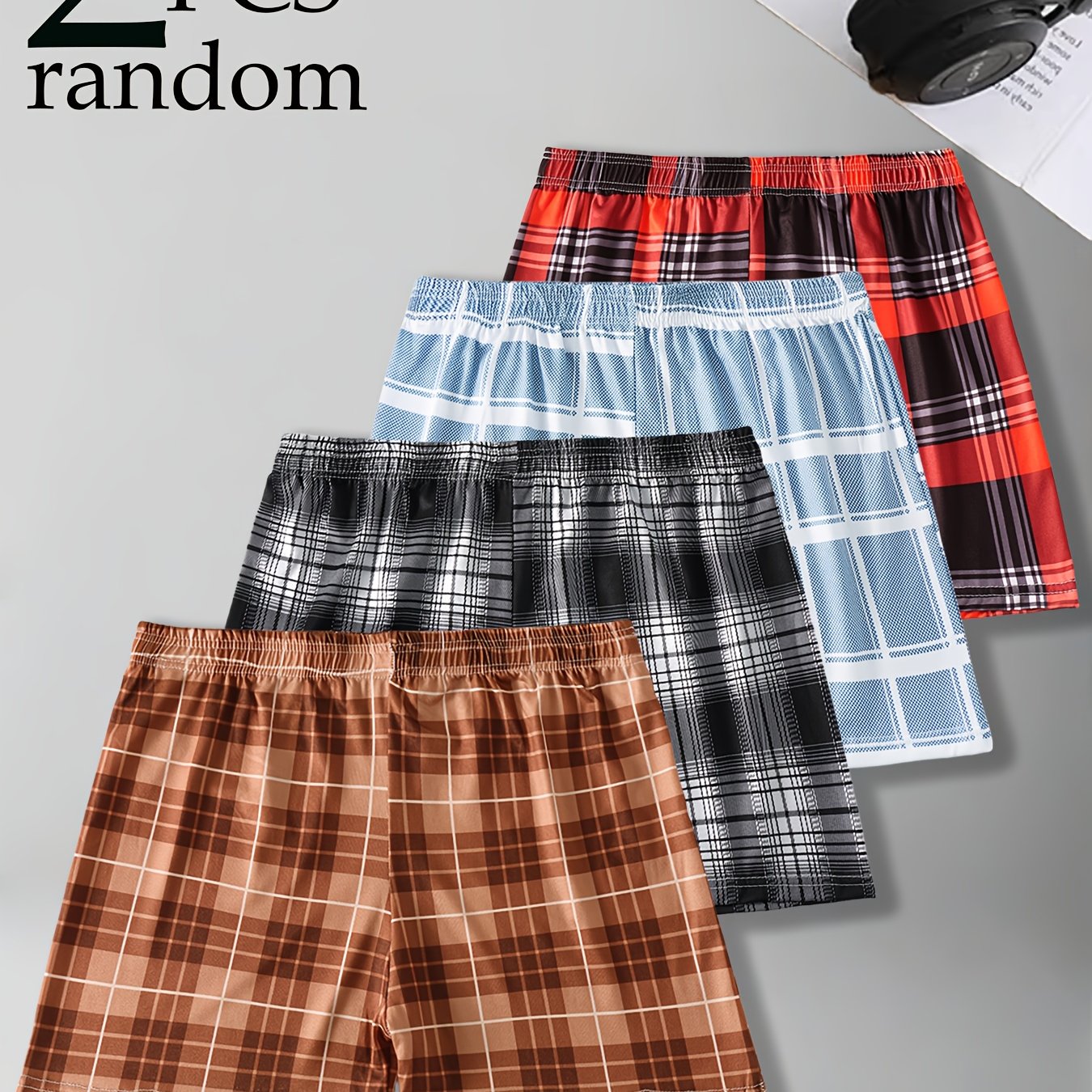 TEMU 2개 랜덤 남성용 드로즈, 4가지 스타일 랜덤 배송, 트렌디한 컬러 블로킹 체크 패턴, 여름 캐주얼 화살표 팬츠