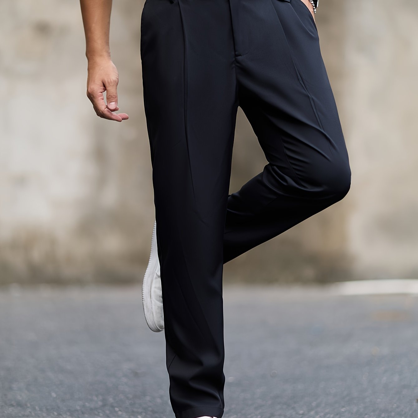 TEMU 남성용 경량 정장 팬츠 / 남성용 슬림핏 캐주얼 패션 팬츠 / 남성용 플랫웨이스트 정장 바지