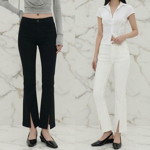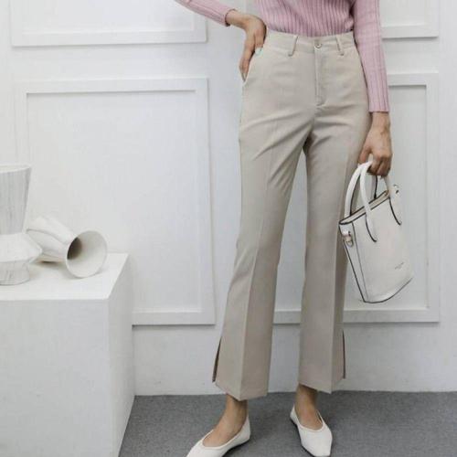 [신상오픈런]여성용 슬림핏 세미 부츠컷 슬랙스 밴딩 슬릿 디자인