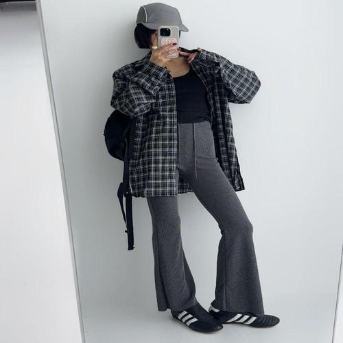 [유니제이] 빅사이즈 세미부츠컷 기모 밴딩팬츠/~99size