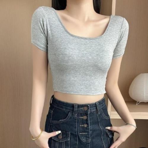 [미라클세븐]여성용 스판 내장 캡 스퀘어넥 크롭 반팔 티셔츠