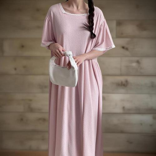 [미라클세븐]여성용 린넨 스퀘어넥 반팔 롱 원피스 핀턱 디자인