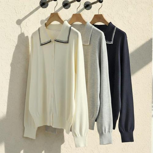 [옷자락] 여자 부드러운 울혼방 세일러 카라 니트 가디건