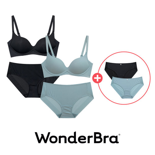 [Wonderbra] 일체형 볼륨 몰드 노와이어 브라팬티 6종세트 블루그레이+베이지+블랙 WBW3O010304C_T