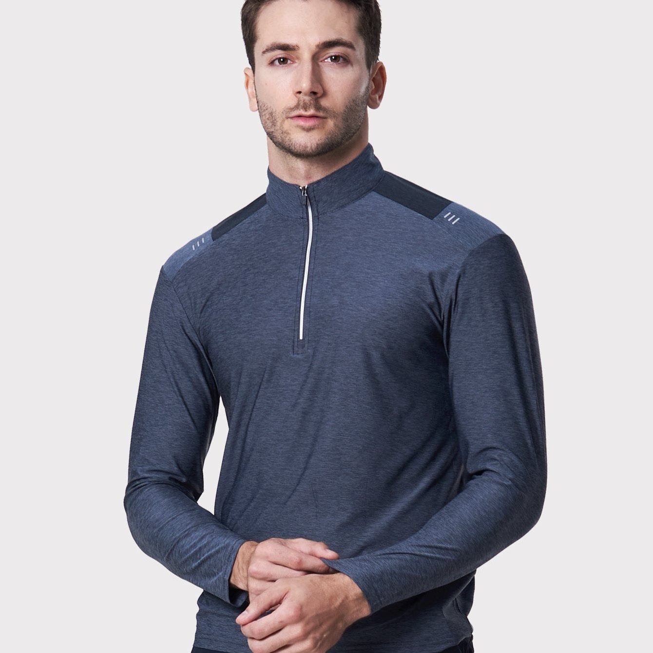 TEMU 남성 편안한 사방신축 스판원단 멜란지 긴팔 집업 티셔츠 유라이크(B22LT012M)
