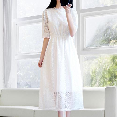 이쁘다요 펀칭 롱 웨딩 휴양지 데일리 셀프 레이스 원피스 지퍼 WFLMEOZ