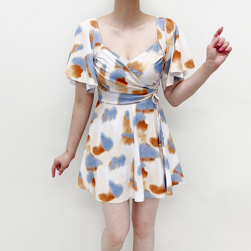 미즈큐즈 / 55 100까지 물나염 셔링 팔뚝살 커버 원피스 수영복