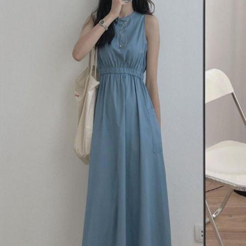 [유야]레이어드 무지 셔링 나시 롱 원피스 민소매 바캉스 -OP0524H- 여성 여름