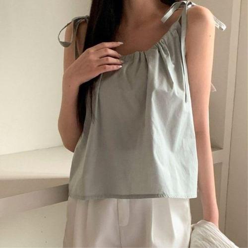 [옷자락]여성 여름 민소매 셔링 블라우스 숄더끈 찰랑핏