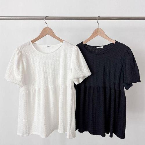 엘케이트 여성 블라우스 셔링 허리 핀턱 여름 반팔 블라우스 데이트룩 LBB002
